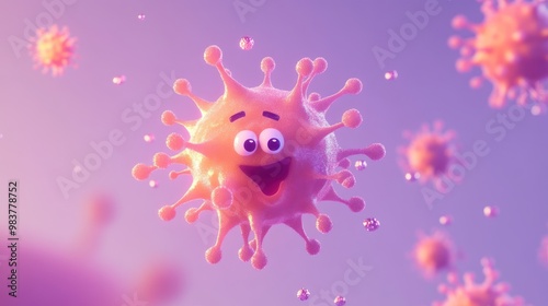 virus, cartoon, smile, character, microbe, animation, colourful, cute, science, cell, fun, playful, health, biology, infectious, germ, creativity, design, illustration, happy, vibrant, infection, humor, education, awareness, environment, representation, laughter, joy, whimsical, friendly, visual, art, three-dimensional, engagement, learning, entertainment, imaginative