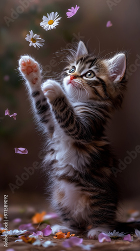 cherry blossom, flower, cat, kitten, animal, pet, felino, domestic, cute, fur, portrait, eye, eye, white, pet, mammal, cat, young, nature, tabby, fluffy, green, face, animal, head, hair