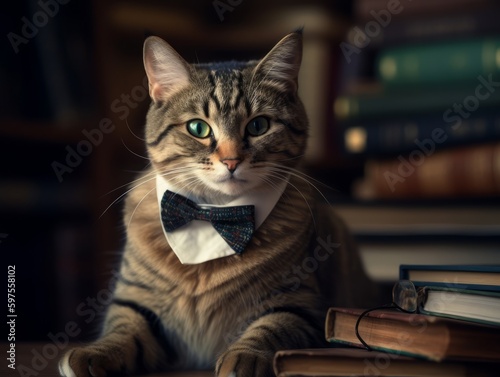 A cat wearing a bow tie, looking scholarly and sophisticated.