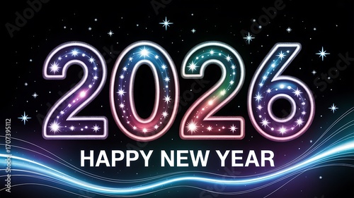 celebration, occasion, joy, event, festive, light, excitement, future, hope, display, eve, glowing, happiness, fun, greeting, vibrant, bright, design, holiday, year, aspiration, beginning, colourful, community, concept, friendship, glamour, glittering, gloss, good, inspiration, moment, motivation, peace, satisfaction, shine, sparkle, welcome, decorating, graphic, happy new year, poster, template, background, elegant, stylish, 2026