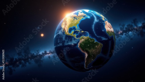 earth, globe, celestial, space, planet, sun, star, universe, astronomy, cosmos, solar system, orbit, continent, north america, south america, milky way, galaxy, night sky, light, illumination, geography, cartography, science, nature, environment, beauty, cosmic, celestial bodies, astrophotography, exploration, discovery, satellite, sphere, rotation, axis, atmosphere, horizon, sunrise, sunset, hemisphere, terrestrial, global, earth, map, outer space, astrophysics, planetary