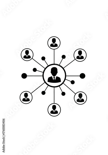 A central figure surrounded by connected individuals, representing a network.