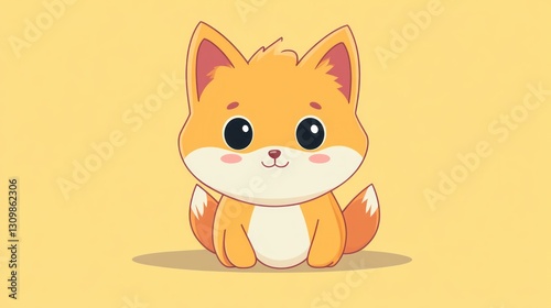 animal, fox, cute, cartoon, orange, fur, sitting, tail, face, eye, nose, ear, smile, small, furry, creature, illustration, design, character, friendly, playful, happy, joyful, adorable, young, simple, shape, outline, vibrant, graphic, art, background, yellow, isolated, render, soft, style, sweet, expression, looking, whimsical, children, children, innocent, domestic, pet, wildlife, cuddly