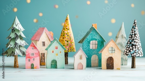 paper, craft, village, house, colourful, whimsical, hand-made, tree, festive, decoration, art, creativity, miniature, scene, playful, design, vibrant, colours, bricolage, cheerful, unique, home, decor, craft, creative, project, imaginative, small, detail, life, model, seasonal, joyful, fun, expression, indoor, display, tabletop, atmosphere, supply, simple, interactive, hobby, charming