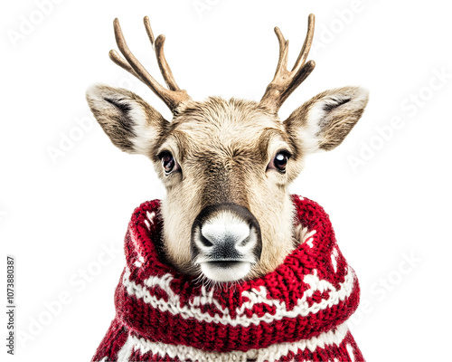 A charming reindeer wearing a cozy, festive red sweater, perfect for holiday-themed projects and seasonal designs.