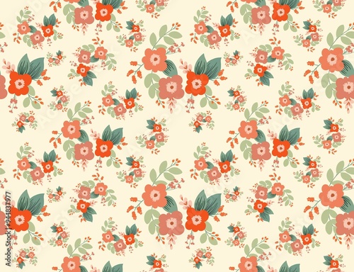 A charming seamless pattern featuring classic floral elements Perfect for holiday-themed designs, wrapping paper, textiles, and festive decorations. The pattern captures the joyful spirit of floral, w