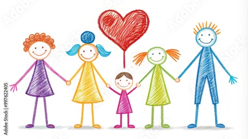A charming stick people family illustration, embodying togetherness and love, showcases a simple design. Colorful