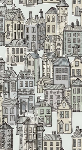 town, city, village, house, building, architecture, urban, street, residential, facades, window, door, rooftop, chimney, vintage, retro, antique, classic, old, traditional, patterned, textile, wallpaper, fabric, design, illustration, drawing, vignetting, whimsical, quaint, charming, detailed, repetitive, background, surface, graphic, home, dwelling, structure, estate, neighbourhood, collection, assortment, many, crowded, numerous, dense, eclectic, variety