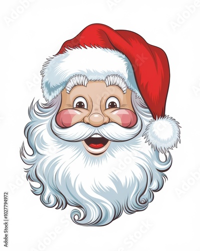 A cheerful cartoon Santa Claus with a fluffy white beard, friendly expression, and a classic red hat, embodying the spirit of Christmas and joy