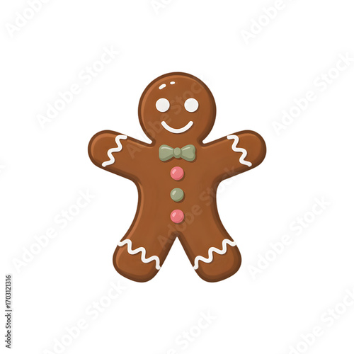 A cheerful gingerbread man cookie with buttons and bow tie perfect for Christmas and winter holidays