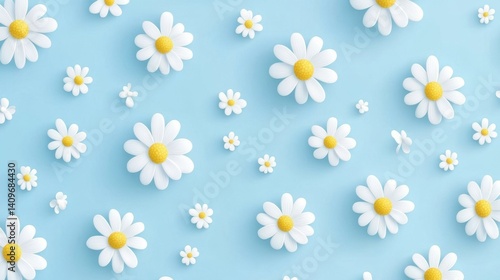 A cheerful seamless pattern with delicate daisies scattered across a soft blue background, evoking feelings of spring and freshness. Perfect for home and design projects.
