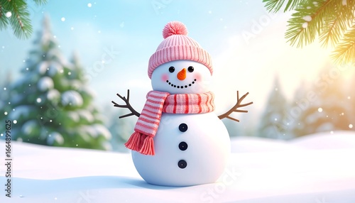 snowman, winter, snow, christmas, pink, cute, happy, cheerful, festive, snowy, landscape, tree, background, image, design, illustration, three-dimensional, holiday, decoration, graphic, soft, beautiful, bright, warm, light, snowflake, scene, cartoon, digital, colourful, creative, modern, elegant, stylish, professional, decorative, vibrant, stunning, amazing, marvellously, fantastic, gorgeous, lovely