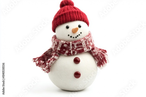 snowman, winter, festive, cheerful, red hat, decoration, holiday, snow, cold weather, play, childhood, christmas, hand-made, playful, cute, craft, seasonal, creative, character, fun, smiling, joyful, white background, winter landscape, family, friends, tradition, celebration, cosy, warmth, traditional, happiness, cold, copy space, text