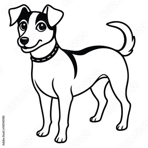 dog, terrier, pet, animal, puppy, canino, domestic, mammal, cute, friends, companion, illustration, drawing, cartoon, art, outline, black-and-white, line art, clip art, graphic, design, vector, standing, tail, happy, cheerful, collar, eye, ear, nose, leg, body, profile, isolated, domesticated, small dog, friendly, joyful