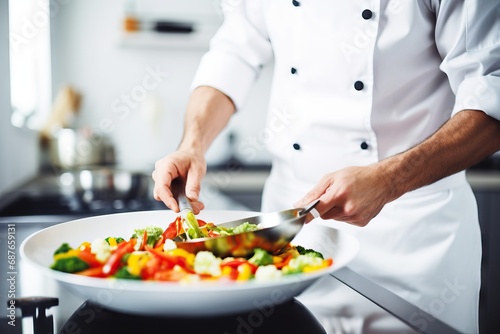 kitchen, chef, food, cook, man, salad, meal, dinner, table, dish, healthy, vegetable, male, eatery, professional, prepare, person, cookery, culinary, profession, white, hand, organic, epicure, plate, fresh, delicious, caucasian, uniform, diet, pepper, lunch, ingredient, knife, board, garnishing, receipe, meat, tomatoes, background, work, bowl, job, lettuce
