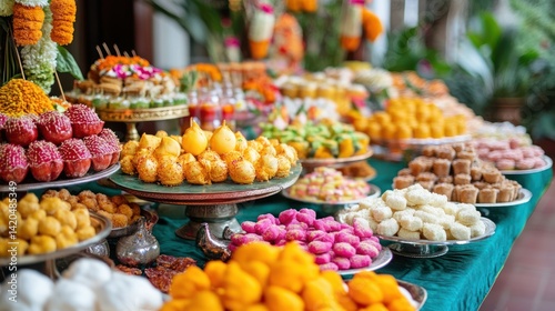 A child’s birthday party in India with bright colors and traditional sweets --ar 16:9 --v 6.1 Job ID: 890823c7-b2c1-464c-b0ed-44b428b678ea