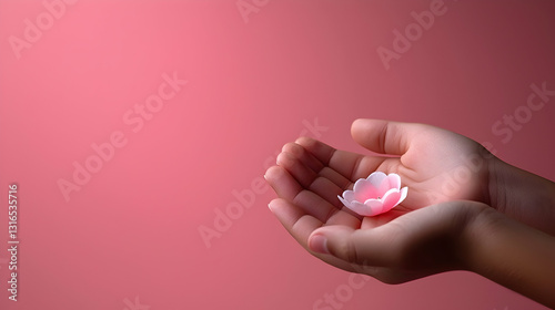 hand, flower, pink, white, blossom, soft, delicate, care, hold, small, gentle, children, skin, touch, finger, palm, background, colours, light, shadow, closeup, detail, floral, beauty, purity, innocence, love, gift, miniature, fragile, serene, smooth, texture, shape, curve, simple, nature, tender, hope, dream, harmony, peace, grace, aesthetic, balance, well-being