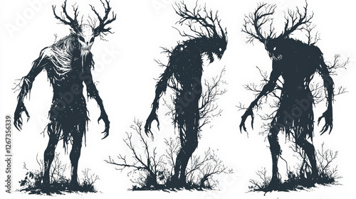 nightmare, mythical, eerie, darkness, antler, monster, ominous, wild, mysterious, creepy, cervid, bone, branch, design, gothic, phantom, contour, beast, haunted, skittish, horn, skeleton, grotesque, vector, supernatural, t-shirt, horror, chilling, silhouette, dark, chest, sinister, scarey