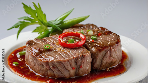 a chinese pepper steak isolated on white background