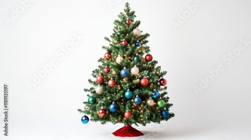 christmas, tree, christmas tree, ornament, decoration, holiday, celebration, winter, festive, seasonal, decorated, bauble, red, blue, green, gold, white, light, glowing, bright, sparkling, round, traditional, fir, evergreen, pine, plant