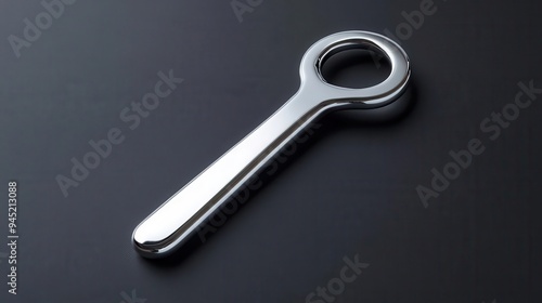 A chrome effect bottle opener with a polished surface and minimalist design, chrome effect, bottle opener, polished