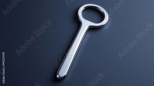 A chrome effect bottle opener with a polished surface and minimalist design, chrome effect, bottle opener, polished