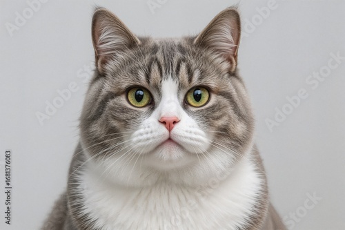 A chubby feline sporting a silly expression in a black and white spotted pattern. This cute cartoon kitty can enhance both print and digital artwork.