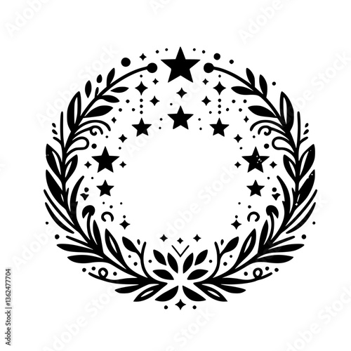 vector, chaplet, star, botanical, black, white, illustration, circular, floral, leaf, design, ornament, pattern, decorative, element, graphic, celestial, nature, symmetry, flourish, elegant, minimalist, foliage, shape, simple