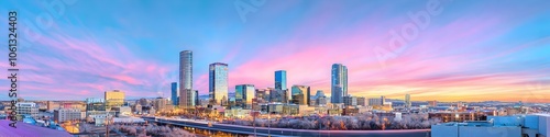 metropolis, skyscraper, twilight, district, panoramic, skyline, financial, waterfront, downtown, panorama, place, sunrise, dusk, america, mix, scene, tower, office, colorado, night, scenic, bridge, business, evening, light, modern, urban, orange, sunset, blue, sky, hue, colourful, pink, water, background, travel, landmark, building, beautiful, architecture, city landscape, landscape, city, river, view