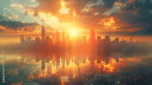 sunset, dawn, silhouette, city, skyline, city landscape, evening, skyscraper, sky, travel, light, sun, downtown, architecture, urban, dusk, building, water, tower