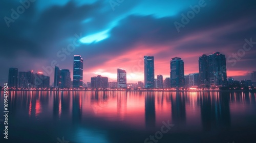 sunset, city, skyline, urban, city landscape, building, skyscraper, water, lake, river, dusk, twilight, evening, night, cloud, sky, colourful, vibrant, dramatic, modern, architecture, light, glow, abstract, bright, moody, tranquil, calm, peaceful, serene, dreamy, hope, beauty, nature, metropolis, contemporary, elegant, futuristic, minimalist, graphic, design, wallpaper, background, illustration, art, photo