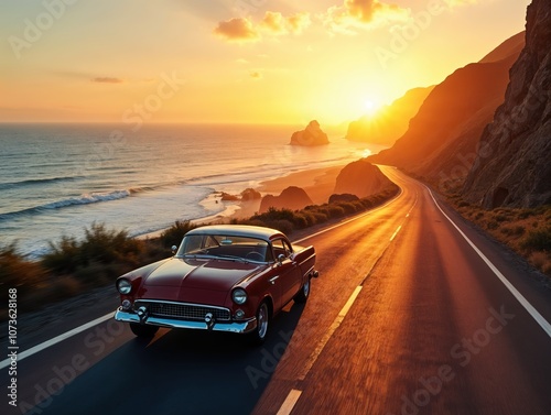car, sunset, coast, highway, vintage, travel, scenic, drive, landscape, nature, ocean, road, journey, adventure, beauty, freedom, exploration, photo, culture, retro, classic, life events, horizon, wave, shore, cloud, environment, escape, motion, vehicle, ambience, picturesque, nostalgia, automobile, sweeping, idylli, winding, seascape, destination, historical, captivating, timeless, iconic