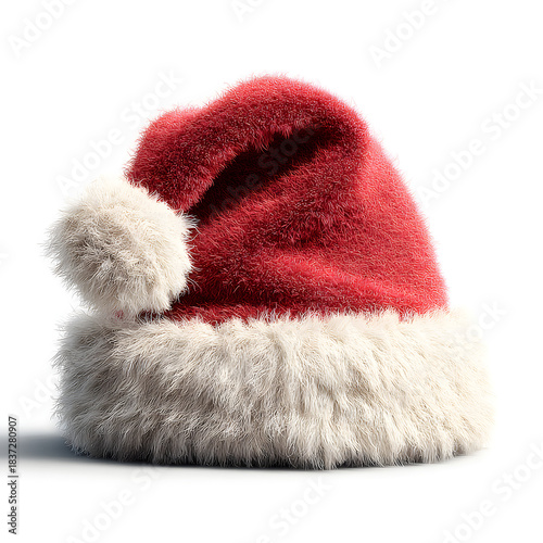 A classic Santa Claus hat with a fluffy white trim, png