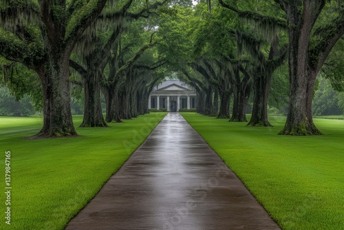 classic, southern, plantation, house, massive, oak, tree, long, moss-covered, driveway