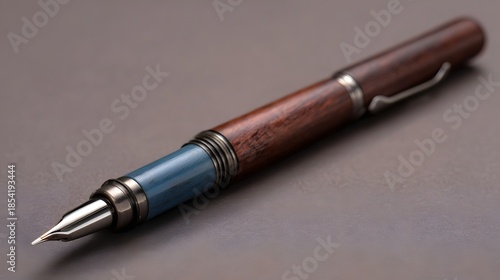 pen, writing, tool, object, classic, elegant, wooden, blue, metal, design, accessory, fountain, ink, instrument, office, stationery, supply, education, business, luxury, craft, hand-made, brown, silver, chrome, nib, tip, point, barrel, clip, accent, detail, item, modern, retro, vintage, art, calligraphy, signature, journal, notebook, paper, desk, professional, sophisticated, hard-wearing, collectable, gift, personal
