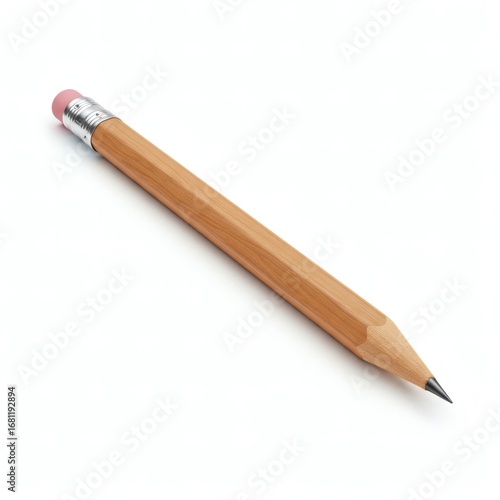 A classic wooden pencil with a sharp graphite tip isolated on a white background, symbolizing creativity and education
