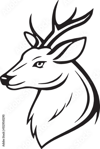 A clean and stylish deer head line art design. This minimal antlered silhouette captures a modern and elegant wildlife look, ideal for tattoos, stickers, decals, logos, and nature-themed prints.