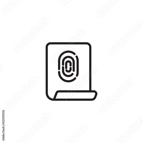 A clean, black and white line art icon featuring a fingerprint within a rectangular frame, symbolizing biometric authentication, identity verification, or secure access.