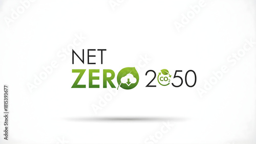 A clean minimalistic visual featuring “Net Zero 2050” with green leaf and CO2 icon, representing long-term climate goals, sustainability targets, and global environmental commitments.