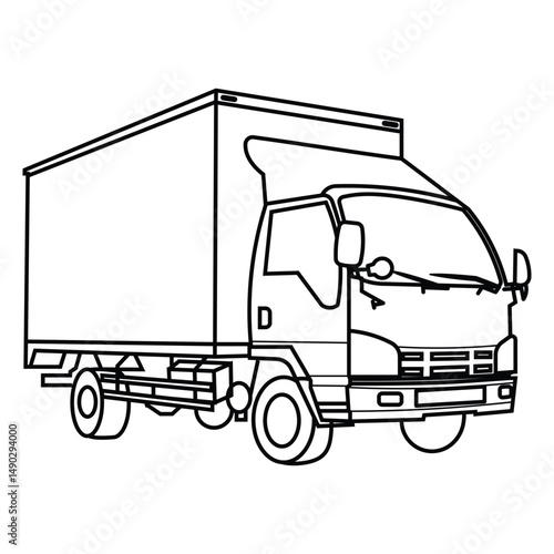 truck, delivery, transport, vehicle, commercial, freight, shipping, logistic, automobile, outline, illustration, cargo, distribution, service, industry, business, move, van, isolated, white background, clip art, line art, monochrome, black-and-white, half face, front view, transportation, automotive, machinery, engine, wheel, road, drive, journey, destination, package, good, export, import, fleet, company, market, trade, global, urban, suburban