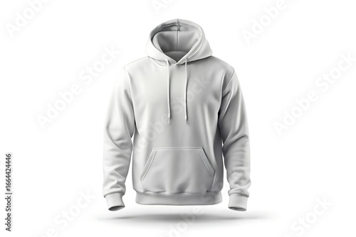 A clean white hoodie isolated on white background, perfect for showcasing apparel designs and branding concepts in a modern way