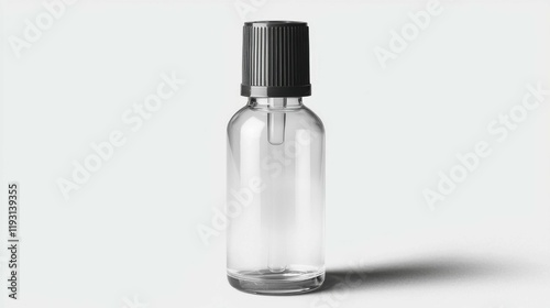 A clear glass bottle with a black cap, designed for beauty or skincare products, showcasing elegance and modern packaging.