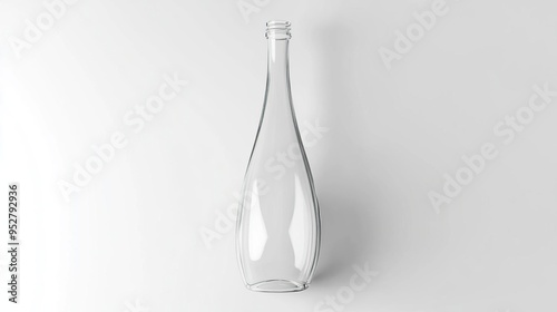 A clear glass bottle with a sleek design, suitable for various beverages or decorative use.