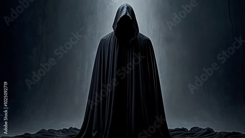 A cloaked figure blending into darkness, representing loneliness and isolation. AI-generated.