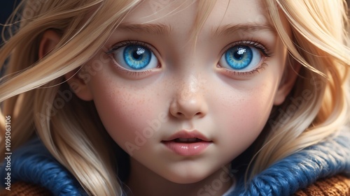 a close - up of a woman's face with freckled hair and a blue eyeshadow.