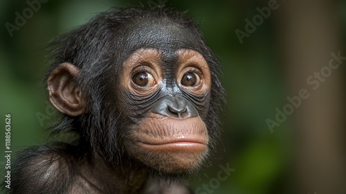 animal, mammal, zoo, wild, wildlife, black, nature, baby, face, bonobo, sitting, looking, eye, portrait, hairy, young, jungle, tree, endangered, thinking, white background, creature, old