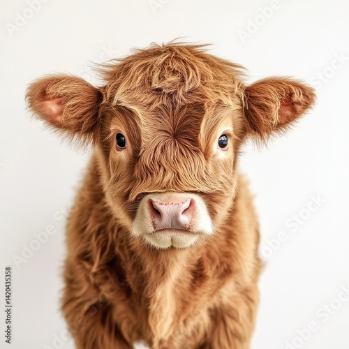 calf, highland, cow, animal, mammal, farm animal, cattle, portrait, farm, domestic, cute, young, brown, furry, fluffy, face, eye, nose, ear, head, white background, studio shot, closeup, adorable, baby animal, rural, countryside, scottish, breed, agriculture, domesticated, wildlife, nature, isolated, small, sweet, tiny, fuzzy