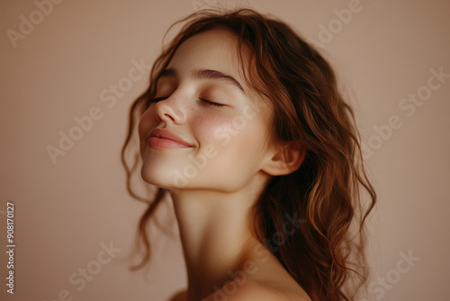 smile, woman, nose, health, cheek, hair, lip, shoulder, eyelash, ear, neck, flash, jaw, lipstick, make-up, gesture, happy, makeover, black, long, step, brown, art, layered, peach, portrait, fashion, fun, illustration, photo, beauty, face, model, skin, clean, make-up, eye, young, person, care, skincare, glamour, fresh, lip, natural, studio, closeup, spa, people