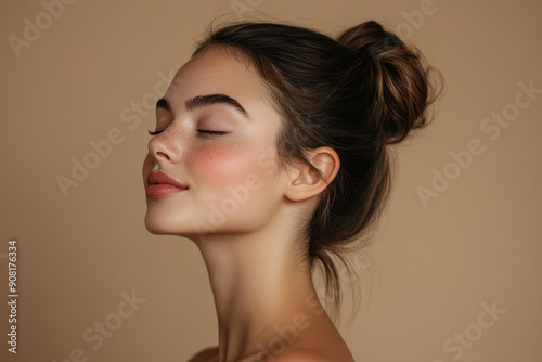 smile, woman, nose, health, cheek, hair, lip, shoulder, eyelash, ear, neck, flash, jaw, lipstick, make-up, gesture, happy, makeover, black, long, step, brown, art, layered, peach, portrait, fashion, fun, illustration, photo, beauty, face, model, skin, clean, make-up, eye, young, person, care, skincare, glamour, fresh, lip, natural, studio, closeup, spa, people