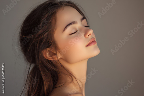 smile, woman, nose, health, cheek, hair, lip, shoulder, eyelash, ear, neck, flash, jaw, lipstick, make-up, gesture, happy, makeover, black, long, step, brown, art, layered, peach, portrait, fashion, fun, illustration, photo, beauty, face, model, skin, clean, make-up, eye, young, person, care, skincare, glamour, fresh, lip, natural, studio, closeup, spa, people